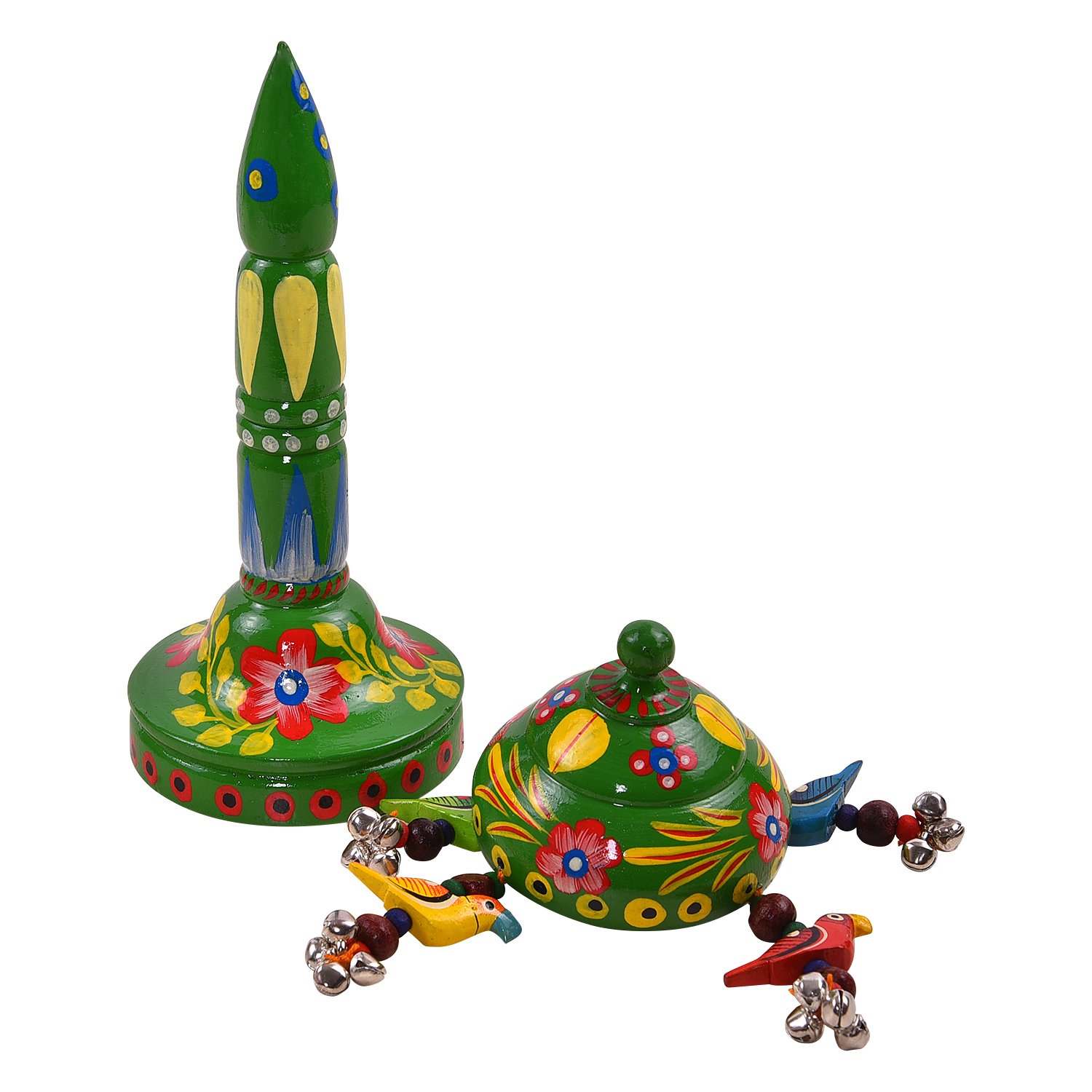Handmade Banarasi Wooden Jhoomer – Elegantly handcrafted by Banaras artisans, this wooden jhoomer (chandelier) features intricate carving and detailed hand-painting in rich, vibrant hues. Inspired by traditional Indian décor, it adds a touch of heritage charm to any space, making it perfect for festive decorations, cultural displays, or unique home interiors.