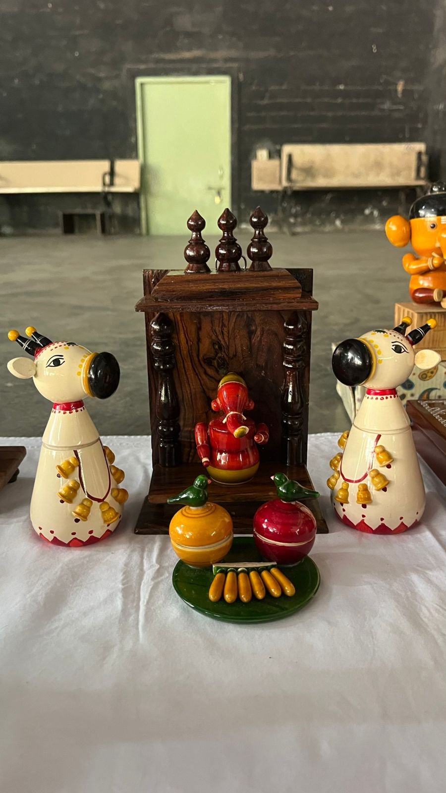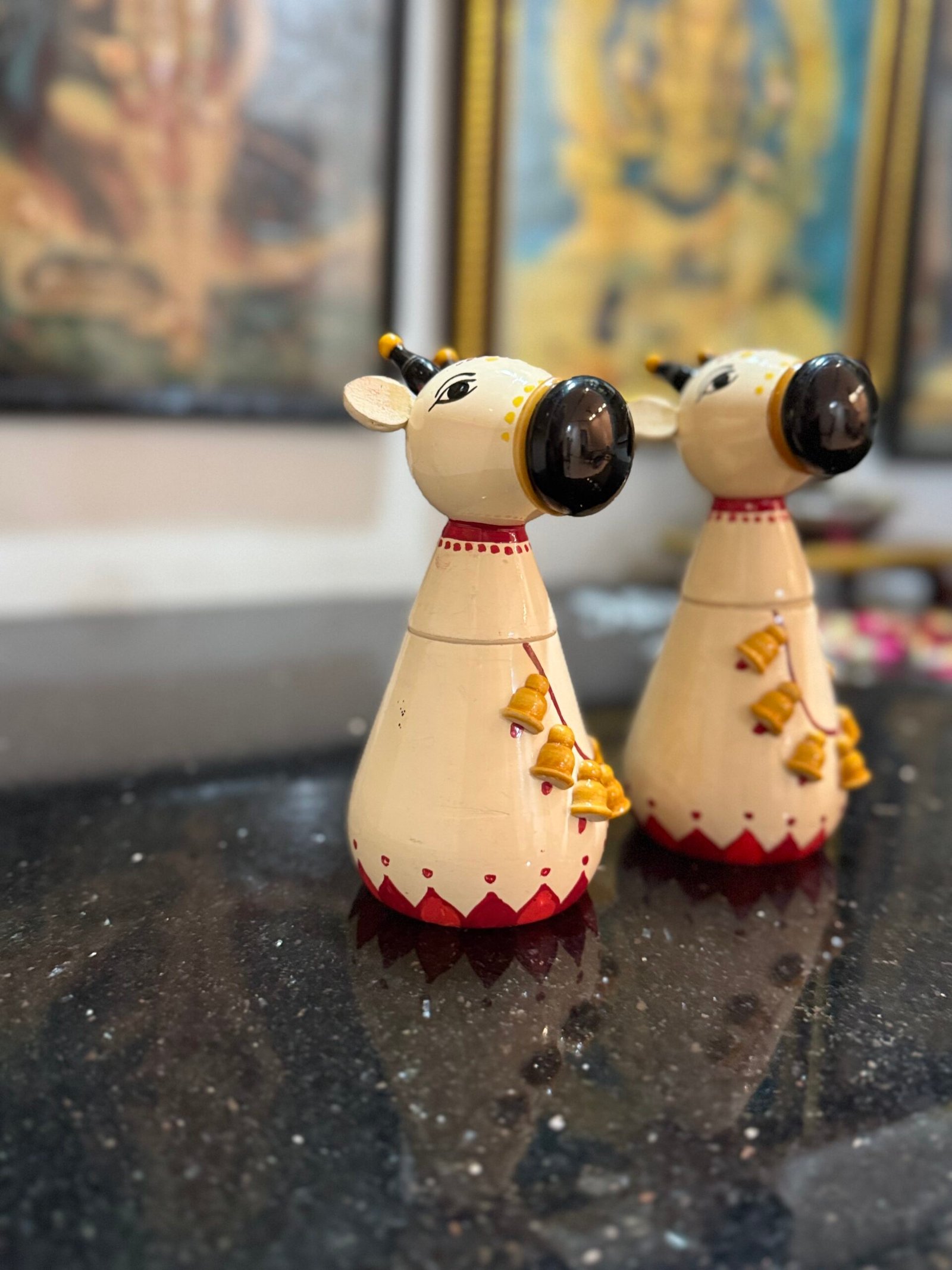 Handmade Wooden Basava Kumkum Box – Kondapalli Craft – Crafted by skilled Kondapalli artisans of Andhra Pradesh, this kumkum box is shaped like the sacred Basava (Nandi) and adorned with vibrant hand-painted details. Made from lightweight country wood, it reflects the traditional Kondapalli toy-making heritage. Perfect for storing kumkum, haldi, or sindoor during poojas, it serves as both a devotional accessory and a beautiful collectible.
