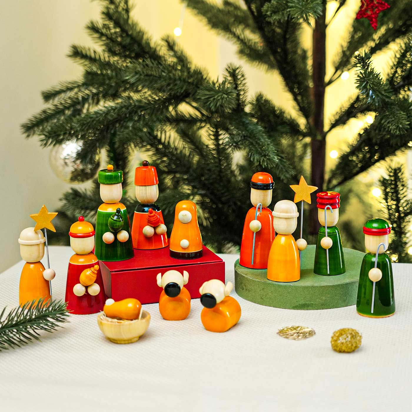 Nativity Set Wooden Figurine for Christmas Decoration | Set of 13 | Channapatna Handcrafted Celebrate the true spirit of Christmas with this beautifully handcrafted Set of 13 Wooden Nativity Figurines, made by skilled artisans from Channapatna, Karnataka. Each piece is carefully turned from soft ivory wood, hand-painted using eco-friendly natural dyes, and polished for a smooth, elegant finish. This timeless nativity set adds warmth, tradition, and sustainable charm to your festive décor. Perfect for home altars, table décor, office displays, churches, and thoughtful Christmas gifting.