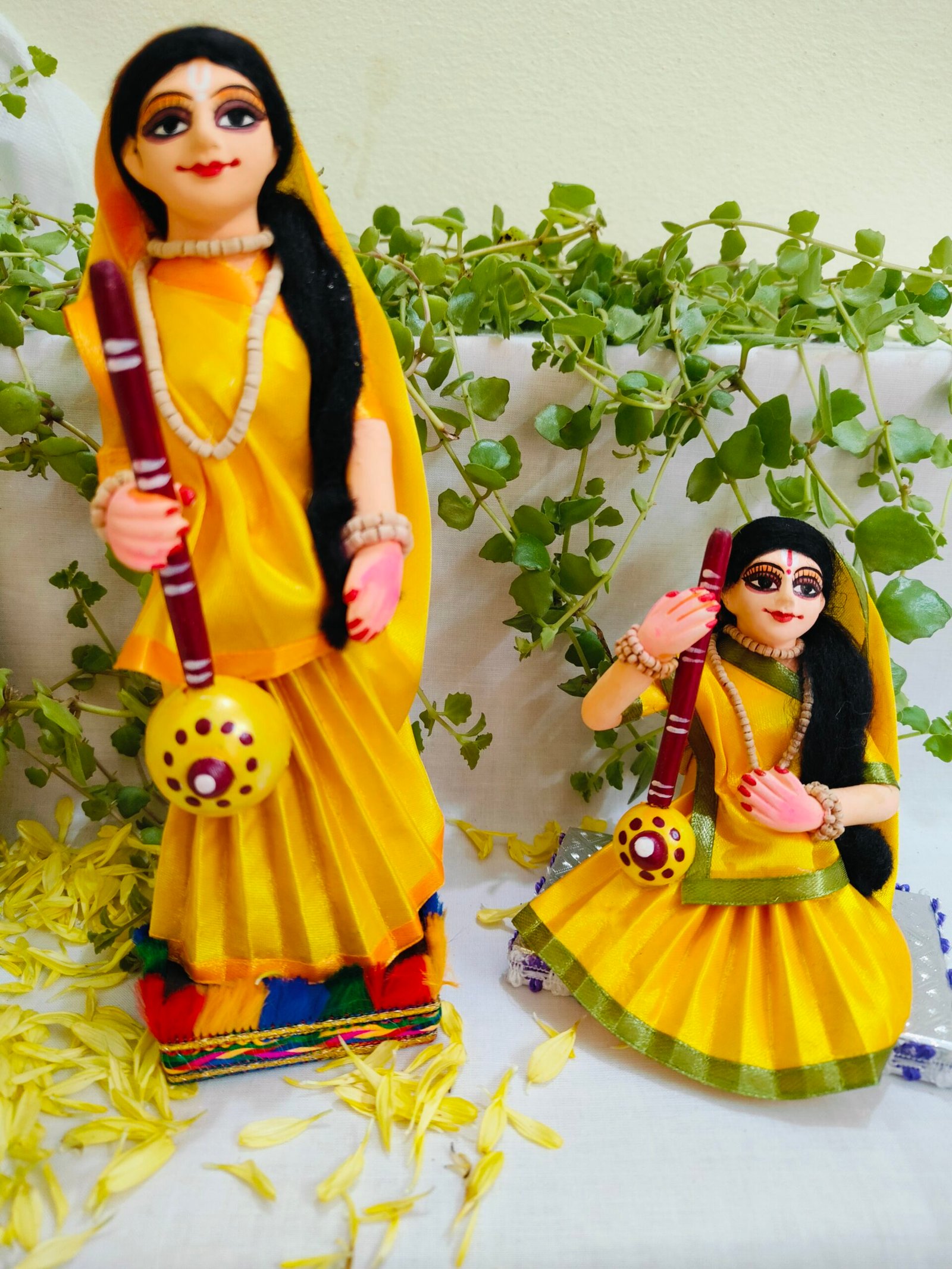 This exquisite Meera doll is handcrafted using premium fabrics and traditional techniques by skilled artisans from Kolkata. Dressed in vibrant attire with intricate detailing, the doll reflects the devotion and grace of Meera Bai. Perfect for Golu displays, home décor, or gifting, this piece carries the charm of Indian heritage and the warmth of handmade artistry.