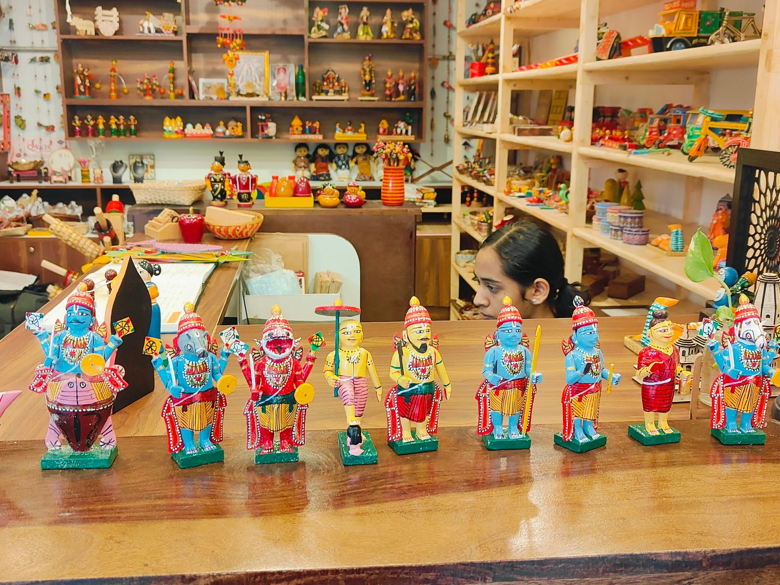 Celebrate the ten incarnations of Lord Vishnu with this beautifully handcrafted Dasavatharam set, made by skilled Kondapalli artisans. Each figure is intricately carved and painted, showcasing the traditional Kondapalli toy-making craft of Andhra Pradesh. Perfect for Navaratri Golu displays, devotional setups, or as a collectible art piece, this set highlights India’s rich mythological heritage while preserving an age-old wooden handicraft tradition.